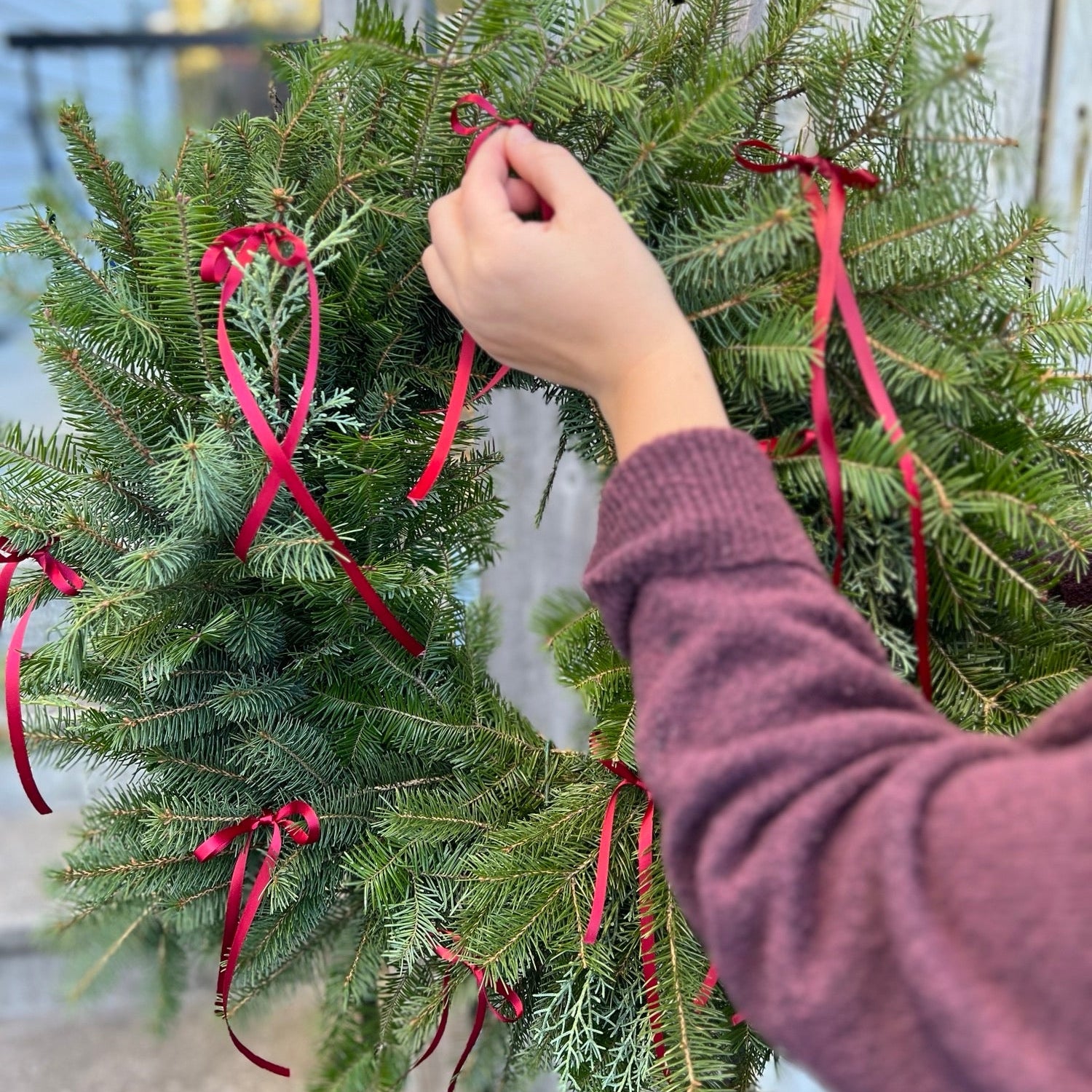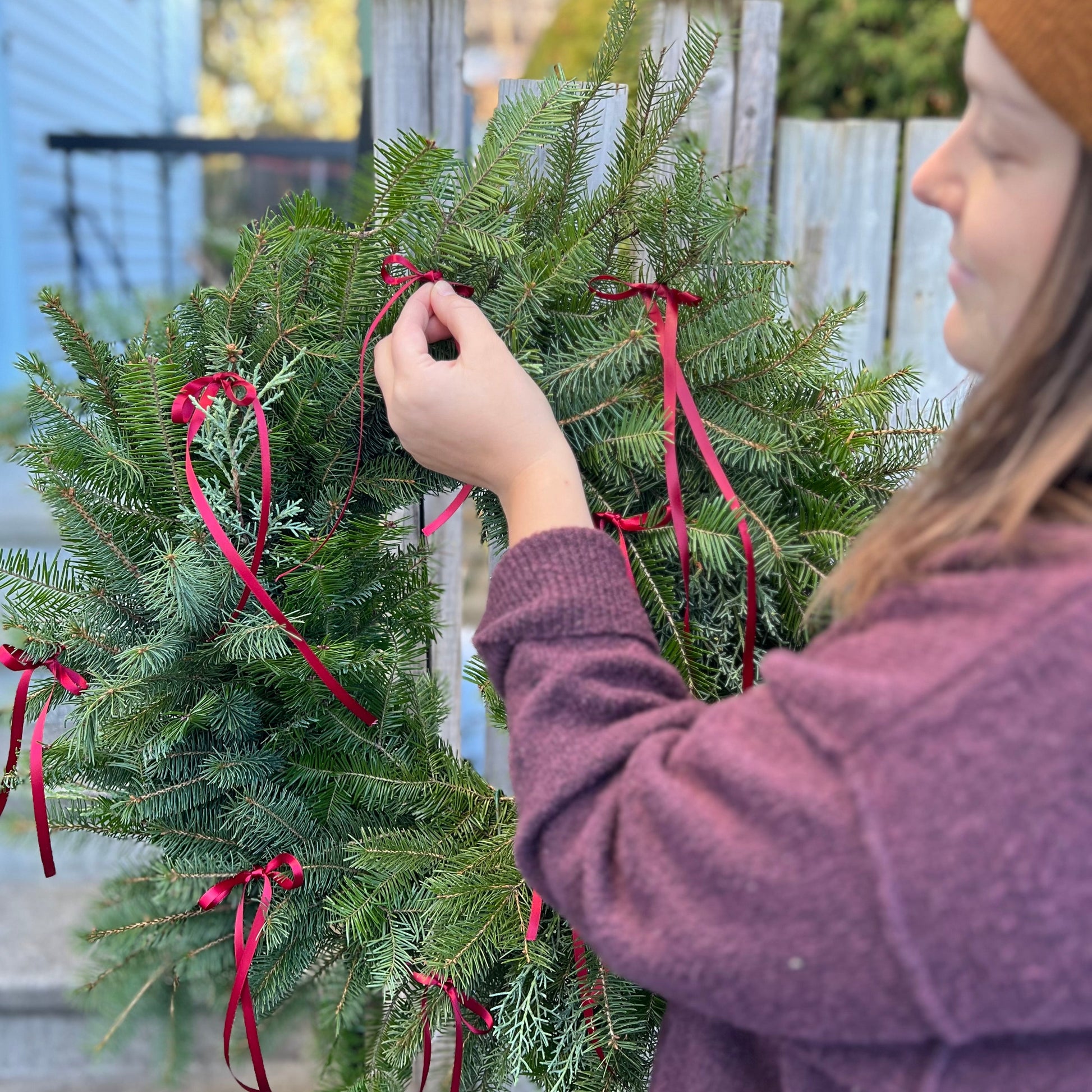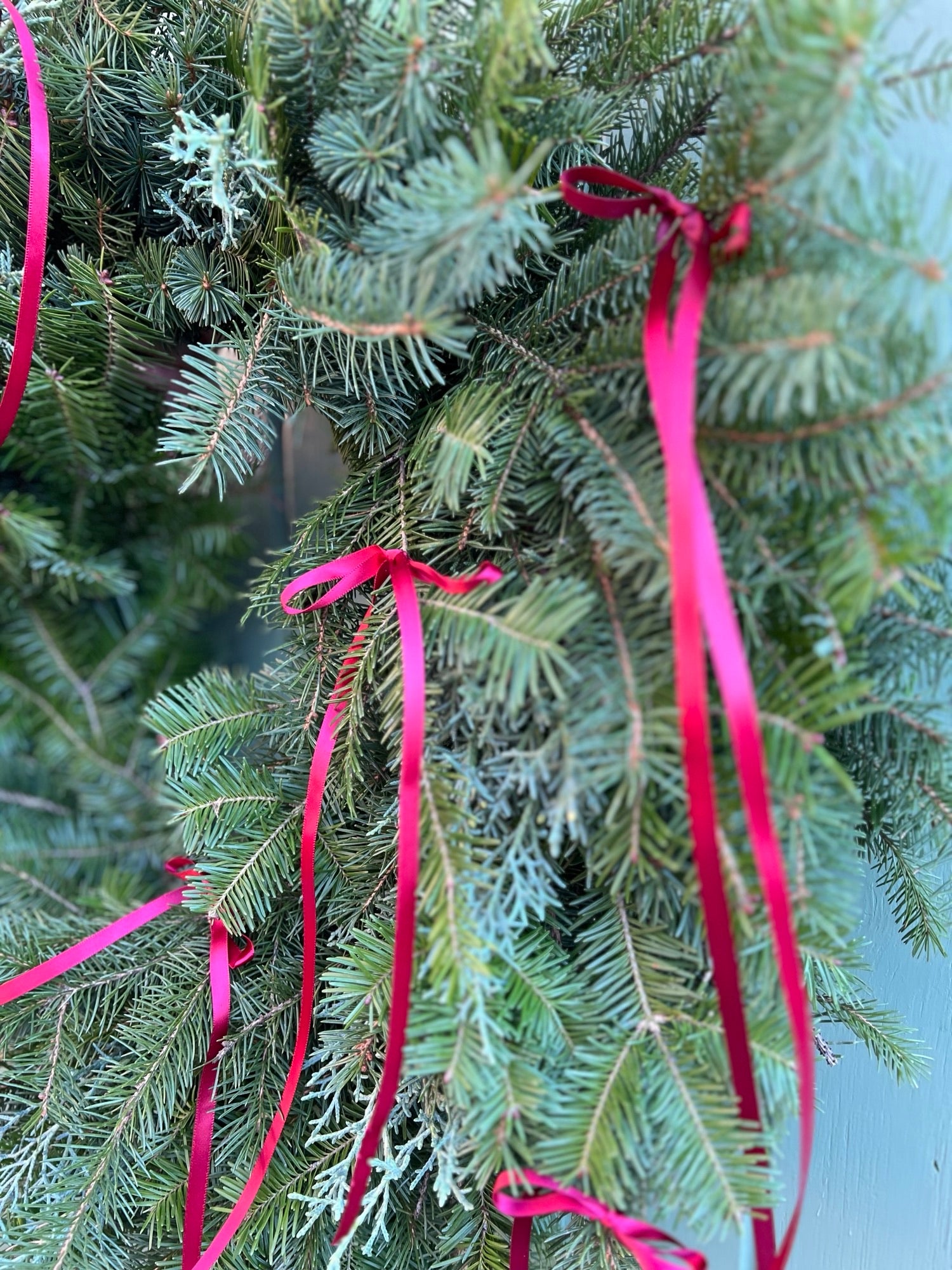 Magnifique couronne de sapinage naturel, confectionnée à la main. Petites boucles élégantes comme décoration simple et chic. Parfaite pour décorer votre porte d’entrée, elle apporte une touche naturelle, élégante et chaleureuse à votre maison.